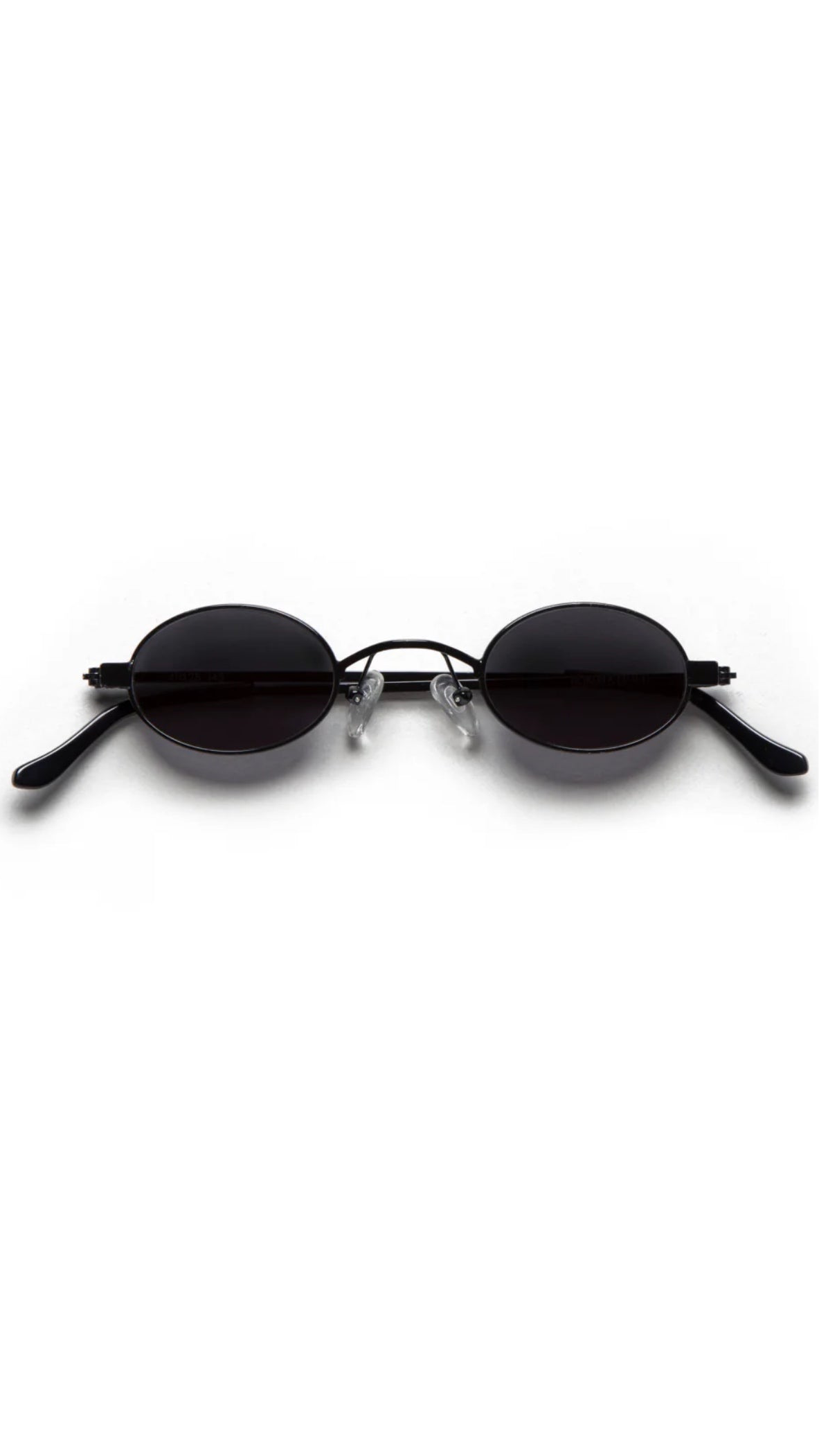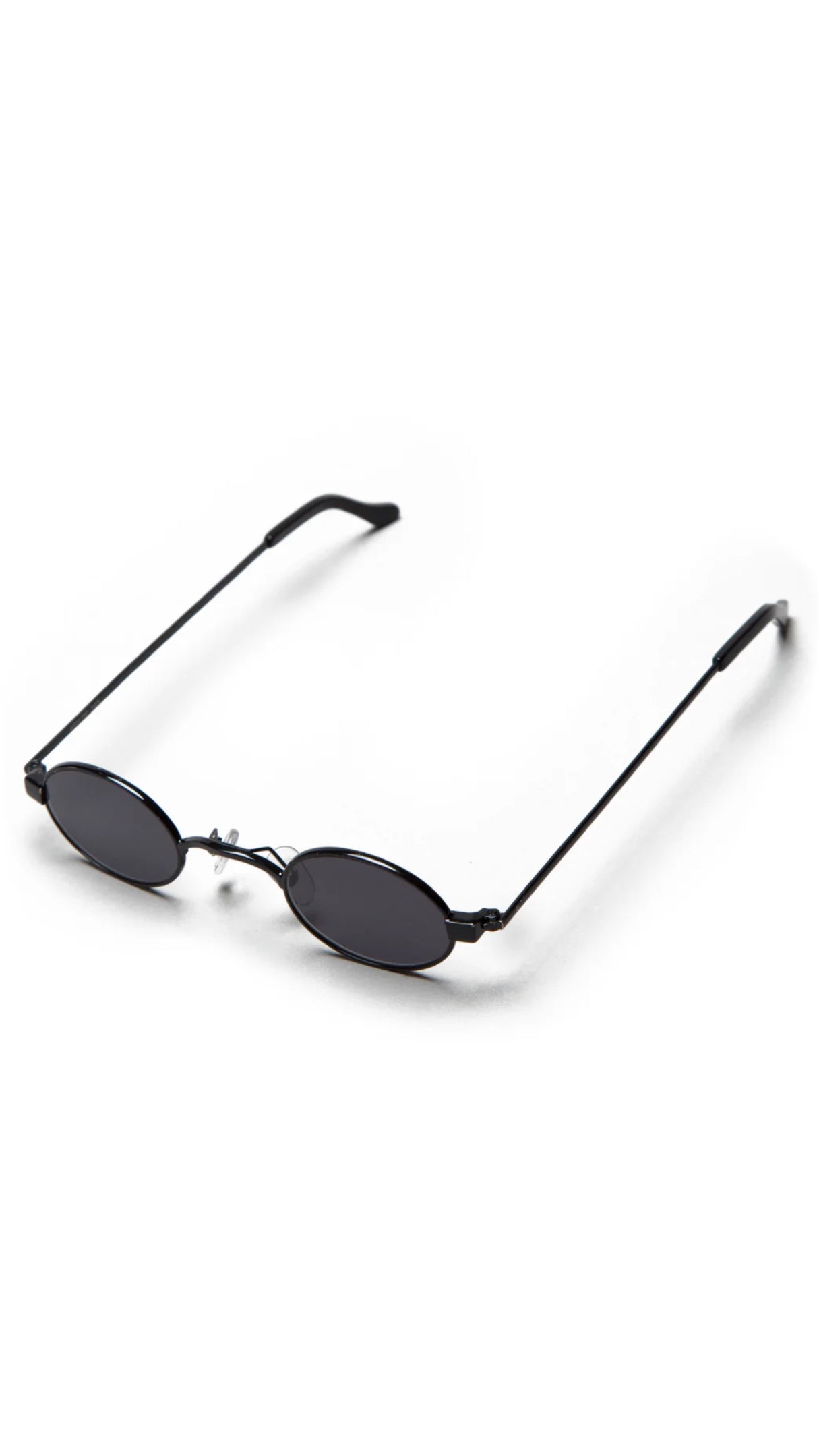 Lightweight matte black stainless-steel frame paired with dark lenses and adjustable nose pads.